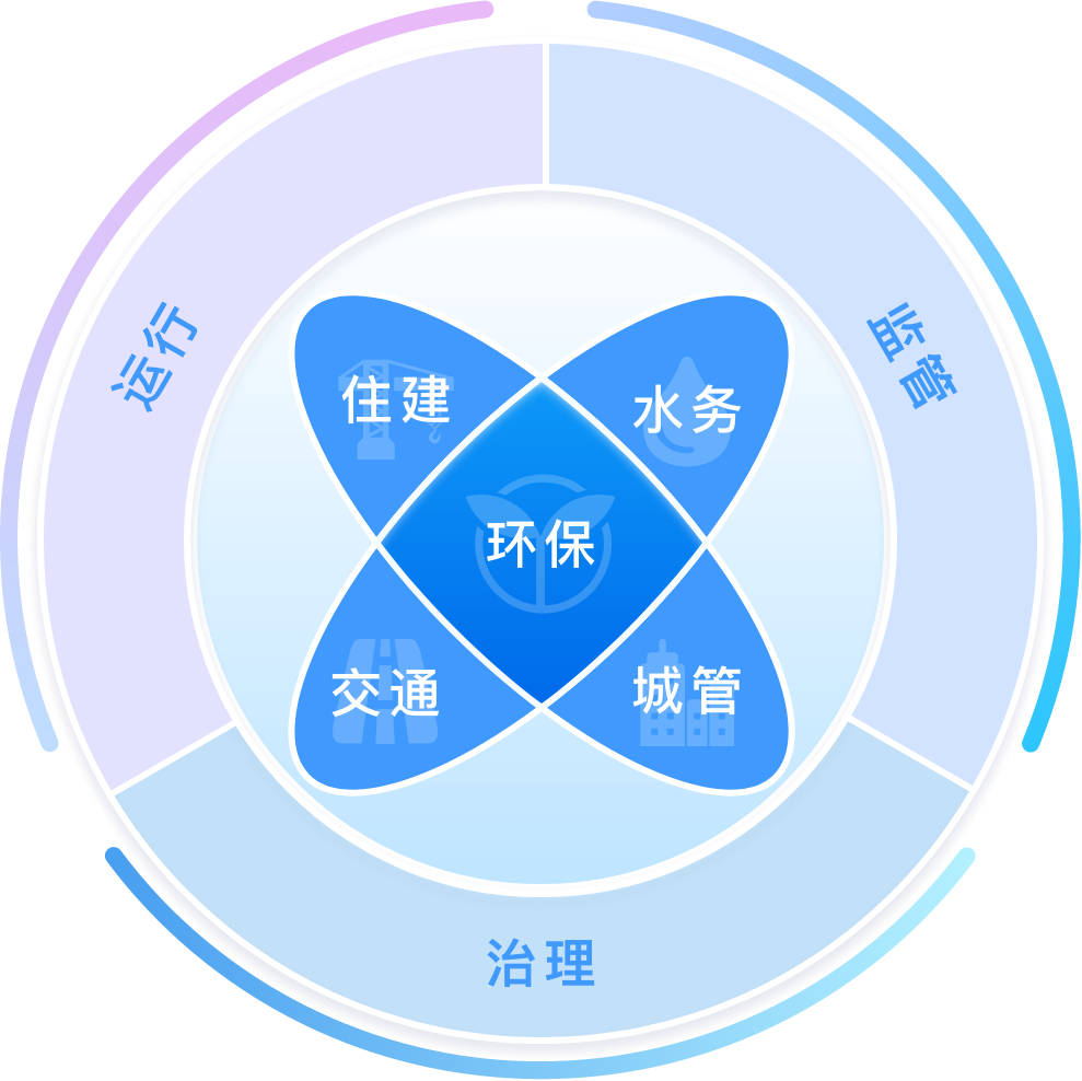 三大領域:城市運行、監(jiān)管、治理;五大行業(yè):環(huán)保、住建、水務、城管、交通